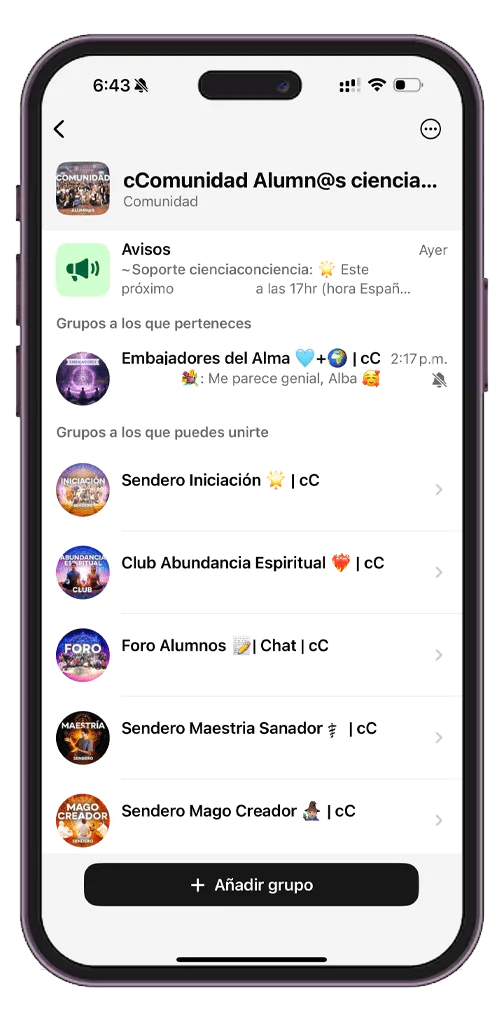 Tras cada sesión, compartes tu experiencia, sensaciones y avances en un espacio seguro, privado y lleno de energía elevada.